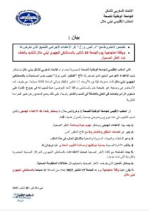 وفي خطوة احتجاجية، أعلن المكتب الإقليمي عن تنظيم وقفة احتجاجية يوم الجمعة 19 شتنبر 2025 ابتداءً من الساعة 11 صباحاً بالمستشفى الجهوي لبني ملال، للتنديد بتكرار الاعتداءات على العاملين في القطاع الصحي.