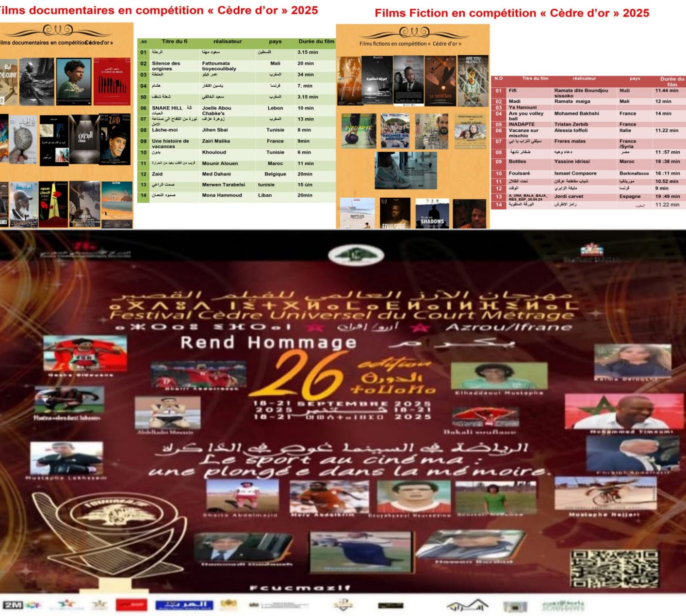 تنطلق يوم غد الخميس 18 شتنبر 2025 فعاليات الدورة 26 لمهرجان الأرز العالمي للفيلم القصير بإفران وأزرو التي تنظمها إدارة مهرجان الأرز العالمي للفيلم القصير بإفران وأزرو..