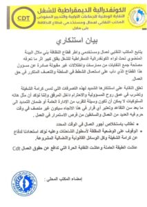 وجاء في البيان، أن المكتب النقابي يتابع بقلق كبير ما تشهده مصلحة جمع النفايات من تجاوزات وقرارات اعتُبرت غير مهنية وصادرة عن مسؤول القطاع، مشيرًا إلى أن هذه الممارسات تمثل “استعمالًا للشطط في السلطة وتعسفًا مكررًا في حق العمال”.