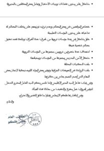 كما نبهت المراسلة إلى تعثر مشروع استبدال البناء المفكك في بعض المدارس، وتحدثت عن استهداف بعض المتصرفين التربويين بخلق عراقيل داخل مؤسساتهم، مما ينعكس سلباً على السير التربوي والإداري.