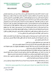 البيان دعا الجهات المعنية إلى احترام كرامة الممرضين، والتعامل مع الملفات الصحية بحياد ومسؤولية، بعيدًا عن الحسابات السياسية أو تصفية الخصومات الشخصية. كما شدد على أن النقابة ستتخذ كل الإجراءات اللازمة للدفاع عن الممرضة صوف القروي، وحماية سمعة الأطر التمريضية من أي مساس.