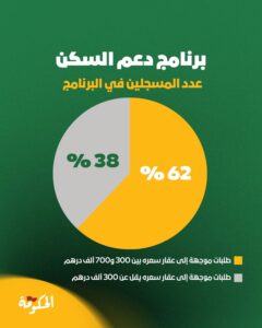 وكشفت بيانات حديثة عن طبيعة الطلبات المسجلة في البرنامج، إذ إن 62 في المائة من الطلبات موجهة نحو اقتناء عقارات تتراوح أسعارها بين 300 و700 ألف درهم، بينما تركز 38 في المائة من الطلبات على عقارات يقل سعرها عن 300 ألف درهم، ما يعكس تنوع الاحتياجات والقدرات الشرائية للمواطنين.