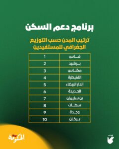 وحسب التوزيع الجغرافي، تصدرت مدينة فاس قائمة المدن الأكثر استفادة، تلتها برشيد، ثم مكناس، والقنيطرة، والدار البيضاء، والجديدة، وبنسليمان، وسطات، ووجدة، وأخيرًا بركان.