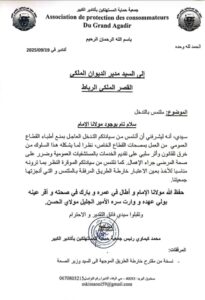 وجهت جمعية حماية المستهلكين بأكادير الكبير رسالة إلى الديوان الملكي بالرباط، بتاريخ 19 شتنبر 2025، التمست فيها التدخل العاجل لفرض منع أطباء القطاع العام من العمل داخل المصحات الخاصة.