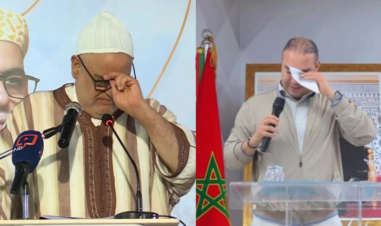 وتداولت مواقع التواصل الاجتماعي صوراً لأمناء عامين، منهم محمد والزين عن الحركة الشعبية، وعبد الإله بنكيران عن العدالة والتنمية، وهما يستعرضان دموعاً على المنصات، كأنها “أداة سياسية” لاستقطاب الانتباه، أكثر من كونها تعبيراً صادقاً عن الحس الوطني.