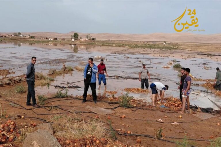ضربت نهاية الأسبوع عاصفة رعدية قوية مصحوبة بسيول جارفة مناطق زراعة البصل في كيكو بإقليم بولمان بجهة فاس-مكناس، مخلفة خسائر كبيرة بين الفلاحين المحليين.