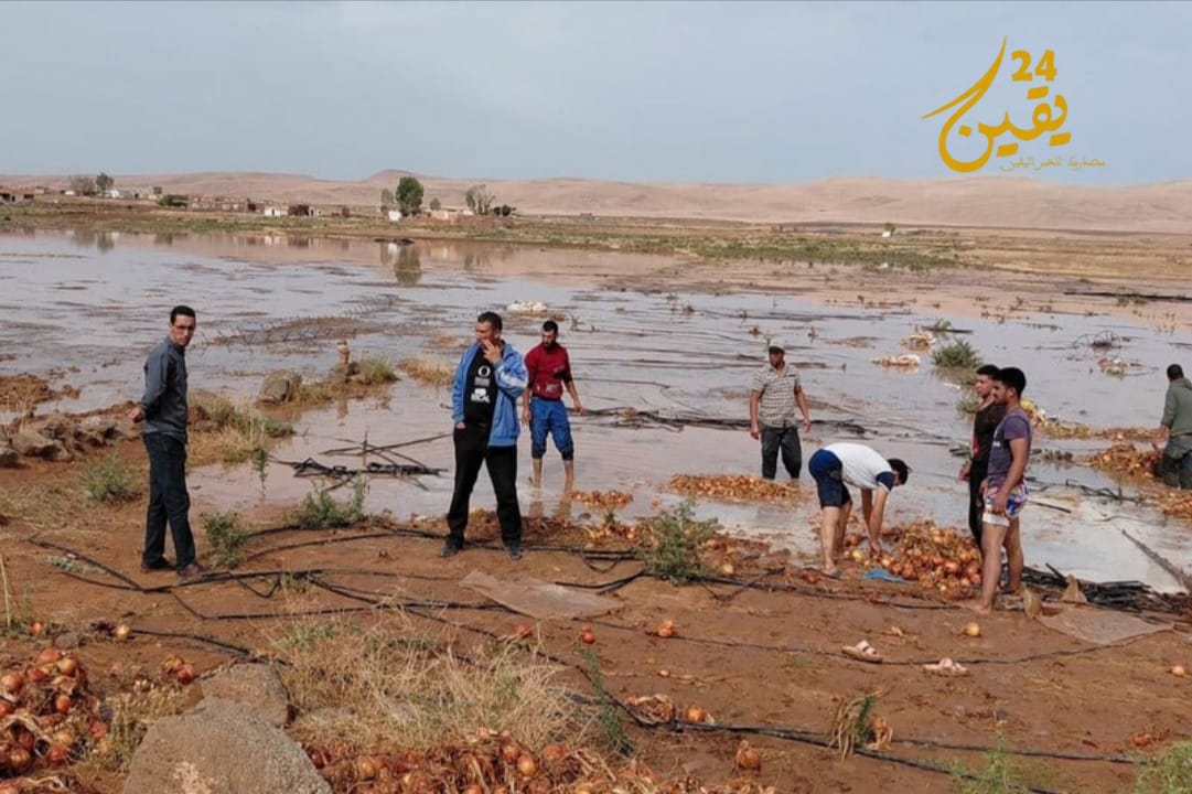 وحسب ما وثقه نشطاء على منصات التواصل الاجتماعي، فقد جرفت السيول مساحات واسعة من محاصيل البصل، خاصة تلك التي كانت في مراحلها الأخيرة من الجني، فيما عبر الفلاحون عن أسفهم لما لحق ضيعاتهم جراء هذه العاصفة المفاجئة.