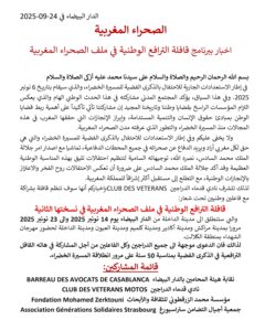 و تنطلق فعاليات القافلة، بمشاركة فاعلين وطنيين وممثلي المجتمع المدني وفعاليات CLUB DES VETERANS، من الدار البيضاء