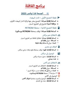 وتشمل محطات القافلة المدن التالية: مراكش، أكادير، كلميم، العيون، وصولاً إلى مدينة الداخلة، للاحتفال بعيد الاستقلال بمنطقة “لكلات” الحدودية لتخليد “معركة لكلات التاريخية” سنة 1957 والتي تمخض عنها عن إجلاء ودحر المستعمرين الفرنسي والإسباني وإلحاقهما خسائر فادحة في معارك شرسة خاضها المجاهدون الصحراويون المغاربة من أبناء جهة وادي الذهب في مقاومة كبرى بتاريخ 18 نوفمبر و الترحم على الأرواح الطاهرة لشهداء الواجب الوطني