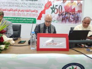 واختُتمت الندوة بمداخلة للأستاذ خالد الغازي من كلية الحقوق بجامعة مولاي إسماعيل بمكناس، الذي ركّز على “روح المسيرة الخضراء كمنسق قيمي في تدبير التحول والتنمية”، مؤكداً أن هذه الذكرى ليست فقط حدثاً تاريخياً بل نموذجاً متجدداً في العمل الوطني المستدام.