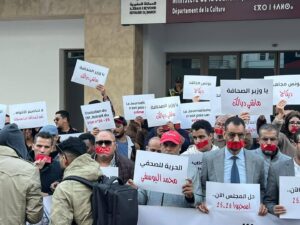 مئات الصحافيين أمام “الاتصال”: المطالبة بحل مجلس الصحافة وإسقاط “قانون التحكم” والإفراج عن الزميل محمد اليوسفي