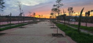 • بحيرة مركزية بعمق 40 سم، محاطة بمساحات خضراء وممرات مخصصة للمشي.