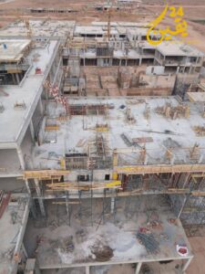 الصور الميدانية التي توصلت بها الجريدة تُبرز بوضوح حجم التقدم المحقق، حيث تم إنجاز الجزء الأكبر من الهياكل الخرسانية للمباني الرئيسية، في حين تتواصل عمليات الصب والتدعيم ببعض الأجنحة، إلى جانب أشغال البناء بالطوب والتهيئة الداخلية. كما تُظهر الصور وجود عدد من الرافعات والآليات التي تشتغل دون توقف، مما يعكس النسق التصاعدي للأشغال نحو المراحل النهائية.