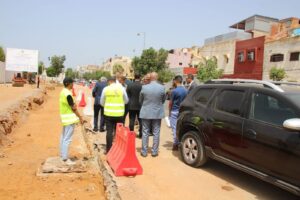 أنهى السيد العامل زيارته بالنقطة الأخيرة في منطقة عين السبع – المخاليف، عبر شارع المسيرة الخضراء الذي يشهد بدوره توسيعًا وتهيئة شاملة. ونزل ميدانيًا رفقة الوفد المرافق وعدد من مسؤولي الورش (بحضور القائد امين العيساوي رئيس الدائرة الحضرية الساكنية بالنيابة وقائد. الملحقة الادارية التاسعة )، مؤكدًا على أهمية احترام التصميم الهندسي المعتمد، خصوصًا أن هذا المدخل يُشكل بوابة مهمة للمدينة ويعكس صورتها الحضارية.