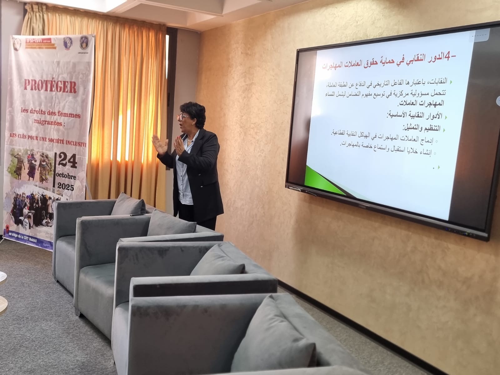 نظمت الشبكة النقابية للهجرة بالمغرب يوما دراسيا تحت موضوع: حماية حقوق المهاجرات،نحو مجتمع عادل و منصف.يومه الجمعة 24 أكتوبر 2025 بالمقر المركزي للكونفدرالية الديمقراطية للشغل-النخيل- بالدار البيضاء.بمشاركة أكاديميين و مختصين في مجال الهجرة و محامين ونقابيين و حقوقيين و جمعويين.