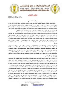 واختتم البيان بالتأكيد على أن الجمعية الوطنية للدفاع عن حقوق الإنسان بالمغرب ستظل وفية لنهجها الحقوقي، ولن تسمح بتحويل القضاء إلى أداة لتصفية الحسابات أو ترهيب المدافعين عن الحقوق والحريات.