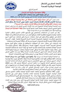 وتؤكد الجامعة التزامها بمواصلة الدفاع عن حقوق ومكتسبات مهنيي الصحة في مختلف مواقع العمل، معتبرة أن المعركة الحالية محطة أساسية في مواجهة ما تصفه بـ”الهجوم على مكتسبات القطاع”.