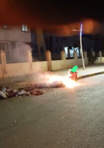 وفي حادث منفصل، تعرف بعض المناطق المتفرقة بالمدينة إضرام النار داخل الحاويات أو بجانبها ليلا، وغالبا ما يقوم بذلك متشردون أو أشخاص يعانون إضطرابات نفسية يلجأون للتدفئة خلال ليالي البرد القارس، ما يزيد من صعوبة جمع النفايات ويعرقل جهود التدخل.