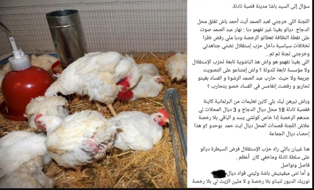 أثارت تدوينة لأحد الأشخاص على موقع التواصل الاجتماعي “فيسبوك” جدلاً واسعاً، بعد أن وجّه اتهامات مباشرة إلى باشا المدينة بخصوص سحب رخصة محلٍّ يزاول فيه بيع الدجاج الحي، مستعملاً عبارات خادشة من شأنها أن تجرّه للمساءلة القانونية.