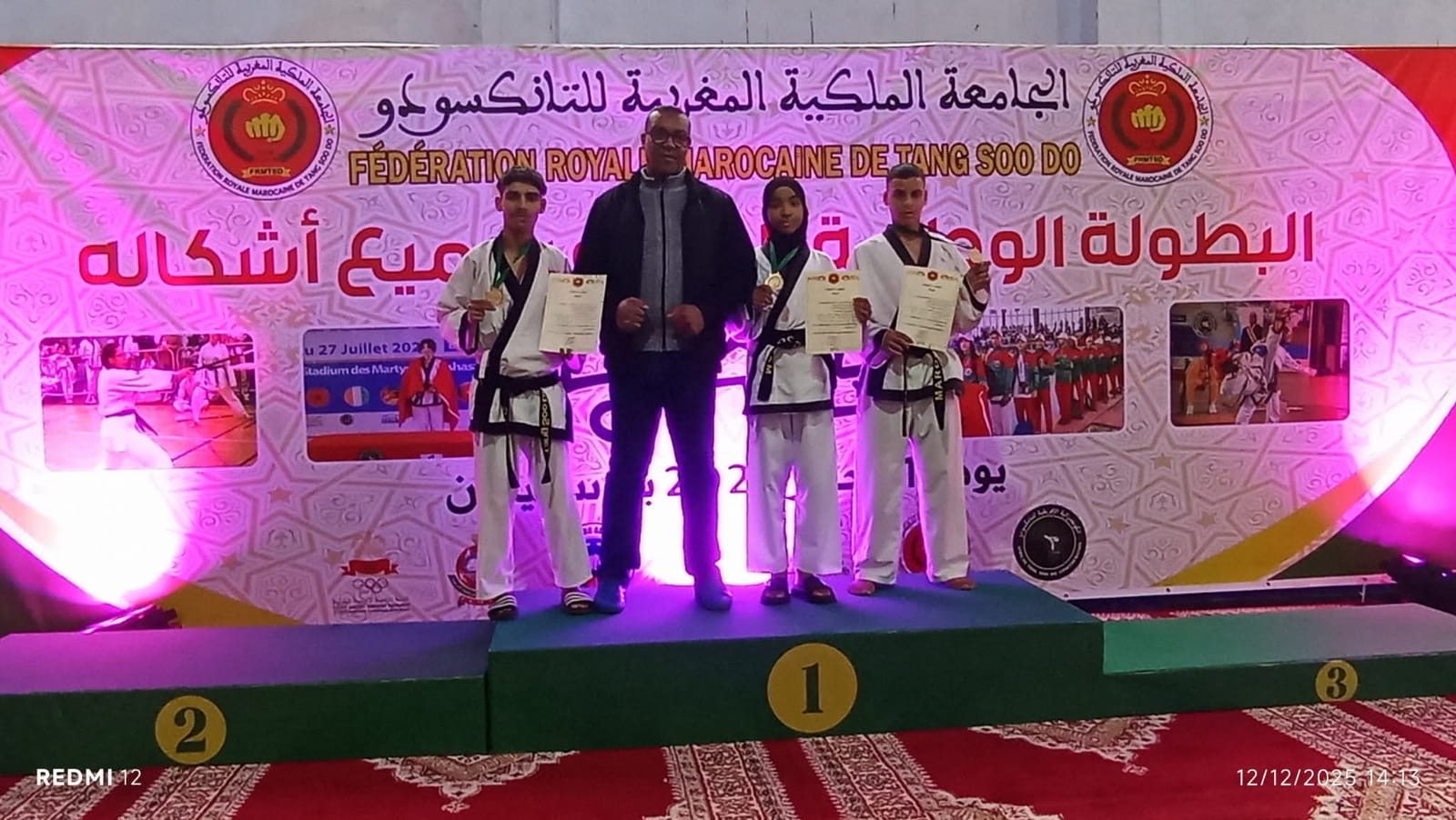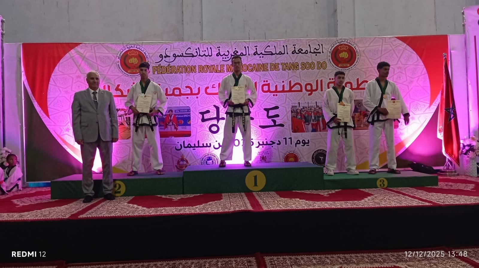 اختتمت فعاليات البطولة الوطنية ومنافسات كأس العرش للتانكسودو بمدينة بنسليمان يوم أمس الجمعة 12 دجنبر الجاري، بحضور جماهيري غفير وبتنظيم محكم عكس التطور الملحوظ الذي تشهده رياضة التانكسودو بالمملكة. وقد شهد اليوم الختامي لهذه التظاهرة تتويج الأبطال في مختلف الأوزان والفئات، حيث كان لنادي شركة الطلحة للتانكسودو بالسمارة نصيب الأسد من الألقاب، مؤكدًا هيمنته على المنافسات على المستوى الوطني. تميزت البطولة بمستوى تقني وفني عالٍ، وبروح رياضية تنافسية شريفة بين المشاركين الذين قدموا عروضًا قوية في مختلف أشكال التانكسودو، سواء في منافسات. وأظهر اللاعبون الناشئون والكبار