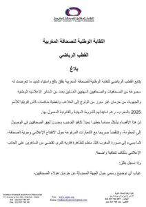 أعرب القطب الرياضي بالنقابة الوطنية للصحافة المغربية عن قلقه البالغ واستيائه الشديد إزاء ما وصفه بـ“الإقصاء غير المبرر” الذي طال عدداً من الصحافيات والصحافيين المهنيين العاملين في منابر إعلامية وطنية وجهوية، بعدما تم حرمانهم من ولوج الملاعب وتغطية منافسات كأس إفريقيا للأمم 2025، المقامة بالمغرب، رغم استيفائهم للشروط المهنية والقانونية المعمول بها.