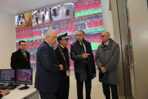 وخلال هذه الجولة، تفقد المدير العام للأمن الوطني ولمراقبة التراب الوطني مختلف المرافق والمنشآت المخصصة للجماهير، كما قدمت له شروحات مفصلة حول كيفية اشتغال قاعات القيادة والتنسيق المرتبطة بشبكة كاميرات المراقبة، والتي ستتكفل بالسهر على تأمين محيط وداخل الملعب، فضلاً عن مفوضية الشرطة المحدثة داخل المركب، والمكلفة بالتطبيق الصارم والسليم للقانون، بما في ذلك القوانين المرتبطة بالأمن الرياضي.