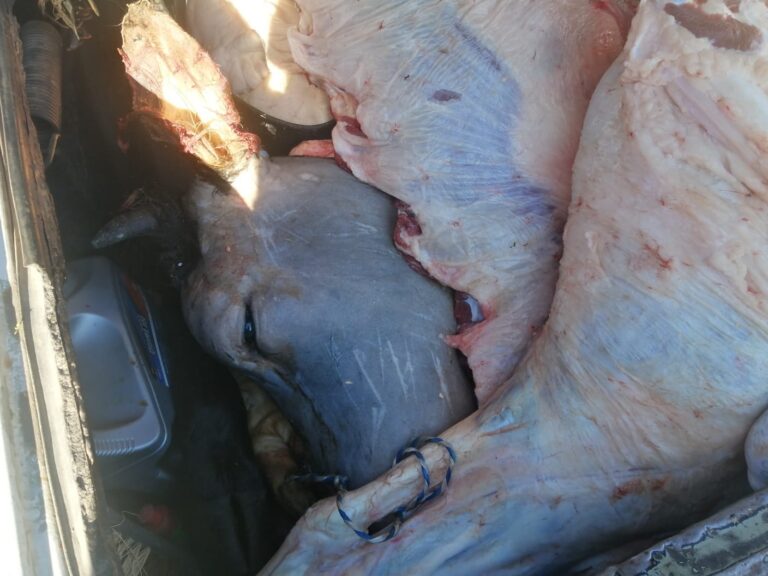 وخلال عملية التفتيش الدقيق لصندوق السيارة الخلفي، تم العثور على ما يقارب 150 كيلوغرام من اللحوم الفاسدة، إضافة إلى رأس عجل وأحشائه، في ظروف نقل تفتقر لأدنى شروط السلامة الصحية، ودون أي ترخيص صادر عن المكتب الوطني للسلامة الصحية للمنتجات الغذائية.