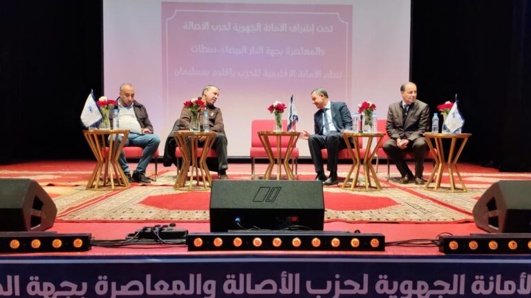نظمت الأمانة الإقليمية لحزب الأصالة والمعاصرة ببنسليمان ،تحث إشراف الأمانة الجهوي للحزب بجهة الدار البيضاء، لقاء تواصليا تحسيسيا يومه السبت 10 يناير بالمركب الثقافي ببنسليمان ،حول موضوع” دور الأحزاب في تخليق الحياة السياسية وتحقيق التنمية،” ويأتي هذا اللقاء في سياق النقاش العمومي حول مضامين الخطاب الملكي السامي كما يهدف إلى تعزيز النقاش المسؤول وربط العمل الحزبي بقضايا التنمية والتخليق السياسي.