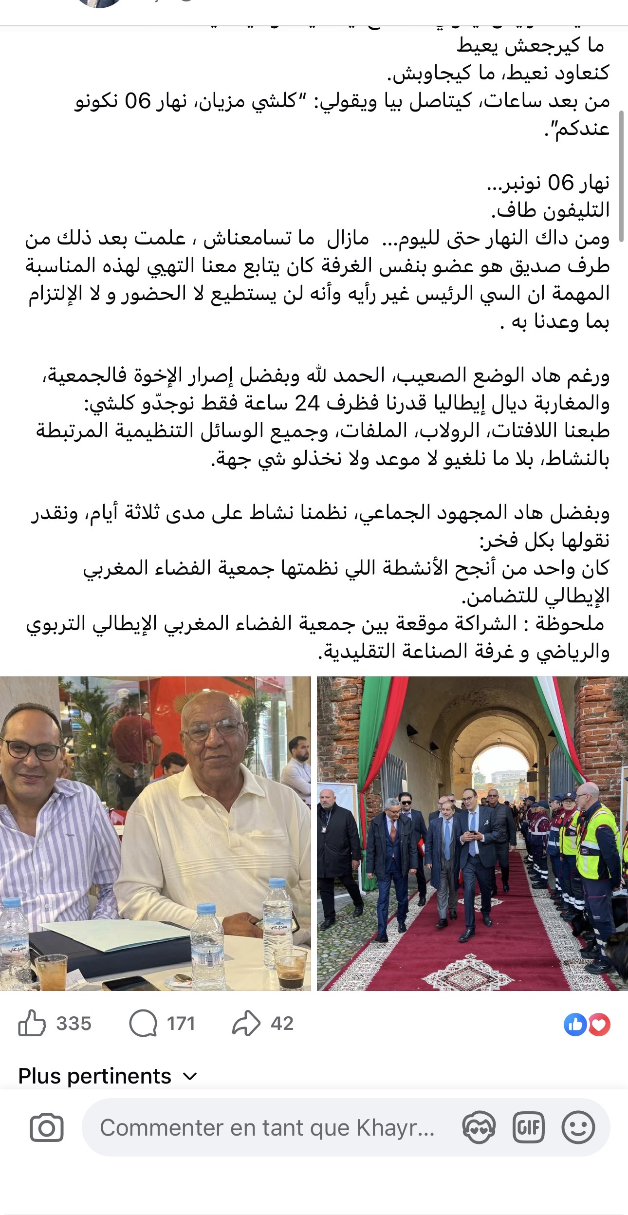 أثارت تدوينة نشرها الفاعل الجمعوي يحيى إل ماتوات على صفحته الرسمية بموقع فيسبوك، جدلاً واسعاً داخل الأوساط الجمعوية والثقافية، بعد كشفه ما اعتبره إخلالاً بالتزامات مرتبطة بتنظيم تظاهرة ثقافية كبرى بمدينة ميلانو الإيطالية، بمناسبة الذكرى الخمسين للمسيرة الخضراء و200 سنة من العلاقات المغربية–الإيطالية.