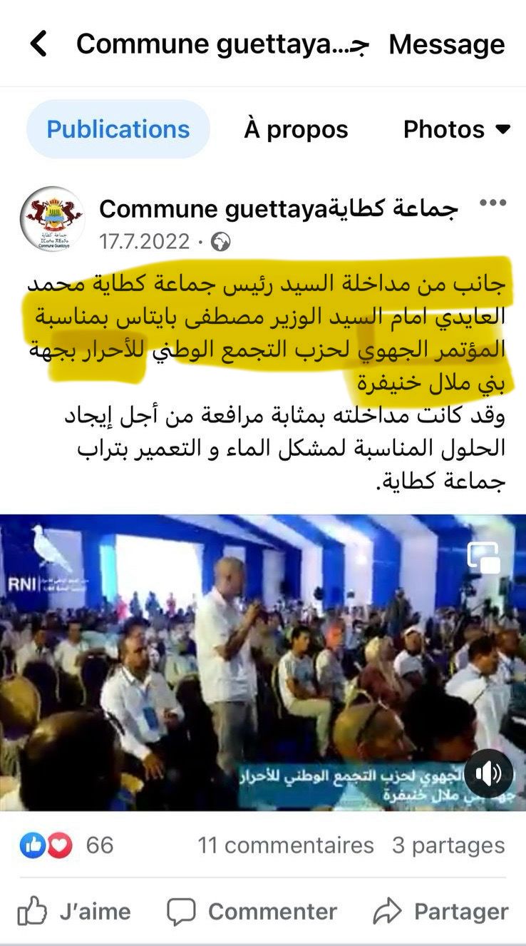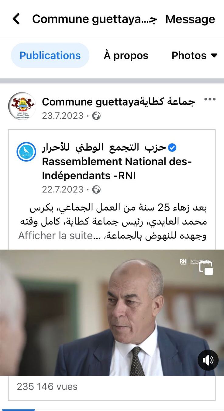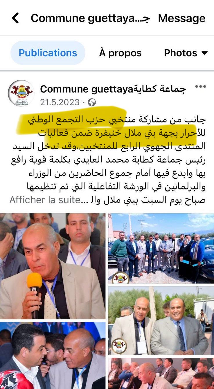 وتظهر هذه المعطيات حضورا متكررا لمضامين ذات طابع حزبي يتم نشرها مباشرة على الصفحة الرسمية للجماعة الترابية اكطاية نفسها، من خلال الترويج لانشطة وخرجات سياسية مرتبطة بحزب التجمع الوطني للاحرار، مع ابراز صور وبلاغات لا تندرج ضمن مهام التواصل المؤسساتي، وهو ما يثير اشكالا قانونيا واخلاقيا حول الفصل المفترض بين العمل الجماعي والعمل الحزبي، خاصة عندما يتم استعمال وسيلة عمومية يفترض حيادها.