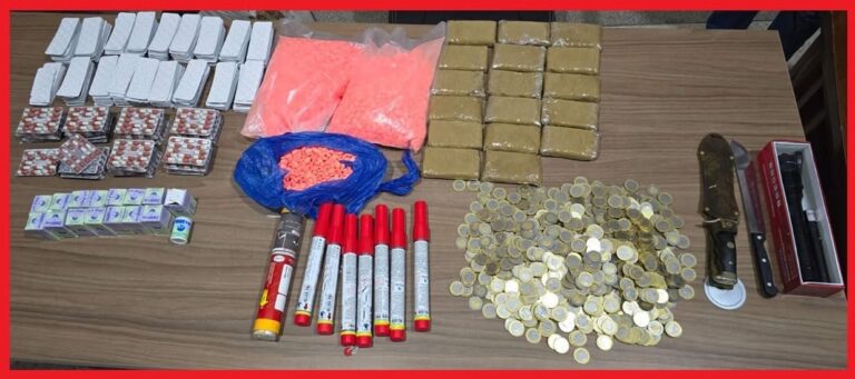كما مكنت عملية التفتيش من حجز صاعق كهربائي وسلاحين أبيضين، إلى جانب سبع شهب اصطناعية ودراجة نارية يُشتبه في استعمالها لتسهيل عمليات الترويج والتنقل.
