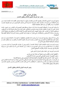 أصدر المرصد الدولي للإعلام وحقوق الإنسان بلاغًا موجّهًا إلى الرأي العام الوطني والدولي، عبّر فيه عن متابعته باهتمام بالغ لما شهدته بعض الفضاءات العامة بعدد من مدن المملكة من توترات وأعمال عنف معزولة نُسبت إلى بعض المهاجرين القادمين من دول إفريقيا جنوب الصحراء، وما رافق ذلك من ردود فعل مجتمعية متباينة.
