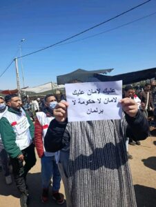 ورفع المحتجون شعارات تنتقد غلاء المعيشة، من بينها “بلادي فلاحية والخضرة غالية عليا”، في إشارة إلى التناقض بين الطابع الفلاحي للمنطقة وارتفاع أسعار المنتجات الأساسية، مؤكدين أن القدرة الشرائية للمواطنين تعرف تراجعاً ملحوظاً، ما يزيد من معاناة الأسر ذات الدخل المحدود.