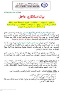 ودعت الهيئة المواطنين إلى التبليغ عن مثل هذه الممارسات عبر القنوات القانونية المتاحة، مؤكدة استمرارها في رصد كل الخروقات التي تمس بالكرامة الإنسانية، والدفاع عن تطبيق القانون بما يضمن حماية حقوق الأفراد وصون اعتبارهم.