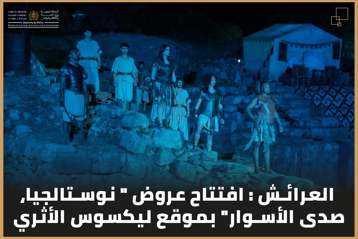 أشرف وزير الشباب والثقافة والتواصل هذا المساء على افتتاح عروض “نوستالجيا – صدى الأسوار” بموقع ليكسوس الأثري بمدينة العرائش، وهو الحدث الثقافي المتميز المنظم تحت الرعاية السامية لصاحب الجلالة الملك محمد السادس نصره الله، والذي يحول هذا الفضاء التاريخي إلى مسرح حي تنبعث منه ذاكرة الحضارات التي تعاقبت على المنطقة.
