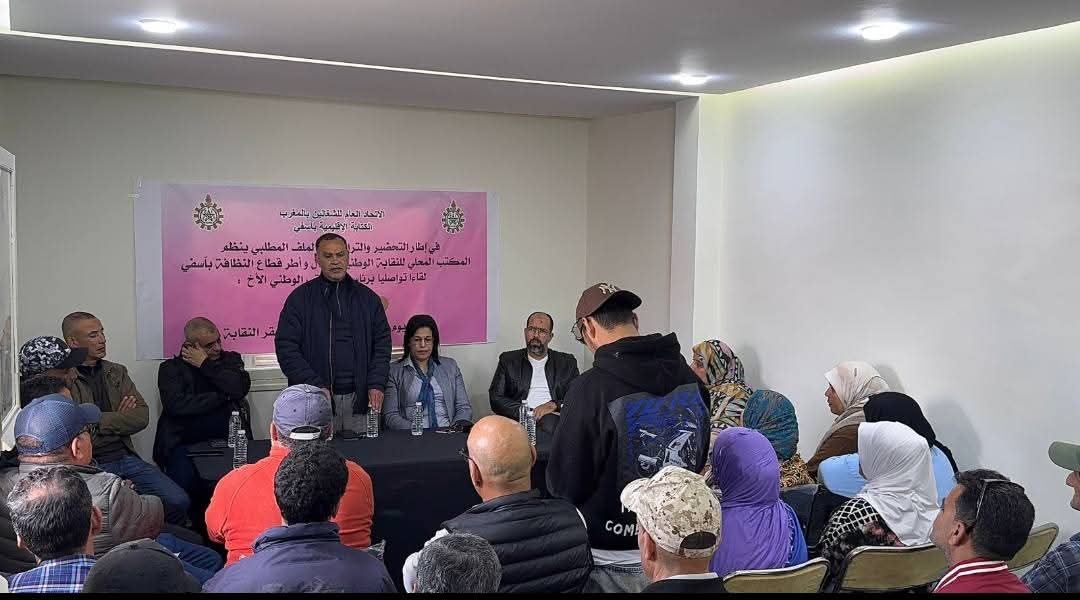 احتضنت مدينة آسفي لقاءً تواصلياً جمع ممثلي النقابة الوطنية لعمال وأطر قطاع النظافة بعدد من العاملات والعمال، في محطة نضالية عكست حجم التوتر الذي يخيّم على هذا القطاع الحيوي، في ظل تزايد الشكاوى المرتبطة بظروف العمل والهشاشة الاجتماعية.