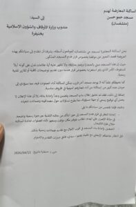 وفي السياق ذاته، أثارت العريضة مسألة إعلان تم تعليقه بباب المسجد يتحدث عن إعادة بنائه، غير أنه – بحسب الساكنة – لا يحمل أي توقيع رسمي أو جهة مسؤولة، ما يطرح تساؤلات حول مدى جدية هذا الالتزام وضمانات تنفيذه على أرض الواقع.