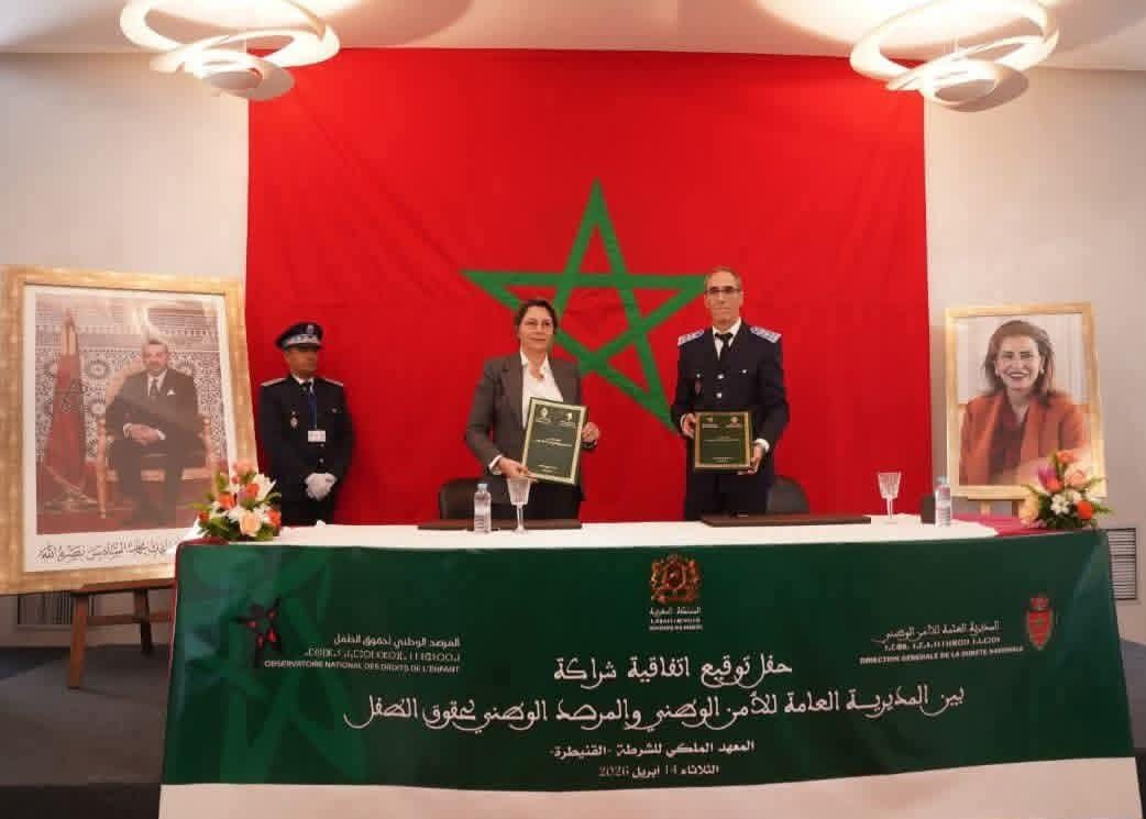 القنيطرة – تم، اليوم الثلاثاء بالمعهد الملكي للشرطة بالقنيطرة، توقيع اتفاقية شراكة بين المديرية العامة للأمن الوطني والمرصد الوطني لحقوق الطفل، تروم تعزيز حماية الطفولة وتطوير آليات التكفل بالأطفال في وضعية هشاشة.