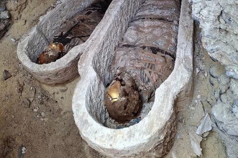 كما كشفت الحفريات عن وجود قطع أثرية نادرة، من بينها ألسنة ذهبية وأخرى نحاسية وُضعت داخل بعض المومياوات، إضافة إلى دلائل على استخدام رقائق الذهب في عمليات التحنيط، ما يعكس مستوى متقدمًا من الطقوس الجنائزية في تلك الفترة.