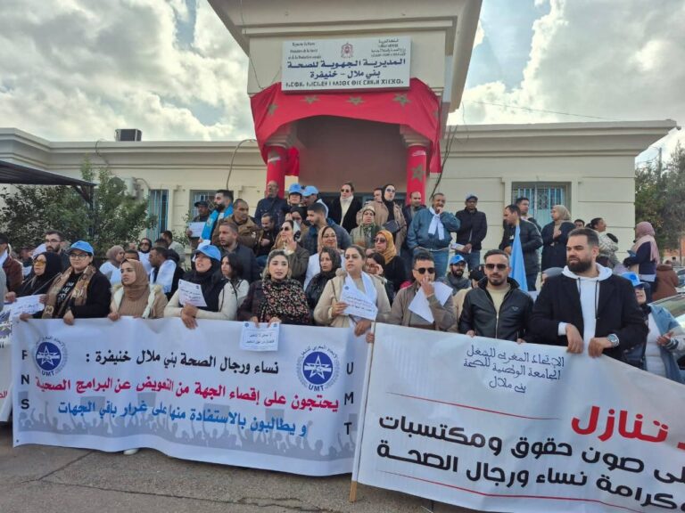 قررت الأطر الصحية العاملة بشبكات المؤسسات الصحية والمراكز الصحية الحضرية والقروية بجهة بني ملال-خنيفرة خوض برنامج احتجاجي جهوي تصاعدي، احتجاجًا على ما وصفته بـ“استمرار تهميش مطالبها الاجتماعية والمهنية”، وعلى رأسها صرف التعويضات المستحقة وتحسين ظروف العمل.