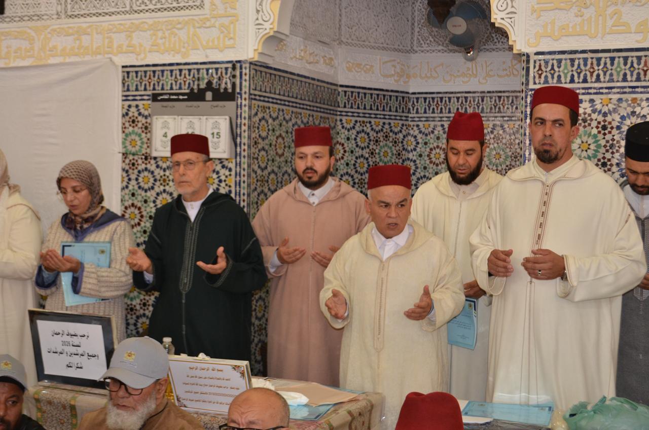 وقد اختُتمت فقرات الحفل بتوزيع الشواهد والهدايا على المؤطرين والمستفيدين، في أجواء احتفالية عكست روح التقدير والاعتراف بالمجهودات المبذولة، أعقبها حفل شاي على شرف الحضور، قبل أن يُختتم اللقاء بالدعاء الصالح الذي رفعه فضيلة الأستاذ عبد السلام السقالي، متضرعًا إلى الله تعالى بأن يحفظ مولانا أمير المؤمنين جلالة الملك مولانا محمد السادس، وأن يبارك في الأسرة العلوية الشريفة، وأن يديم على الشعب المغربي نعمة الأمن والاستقرار.