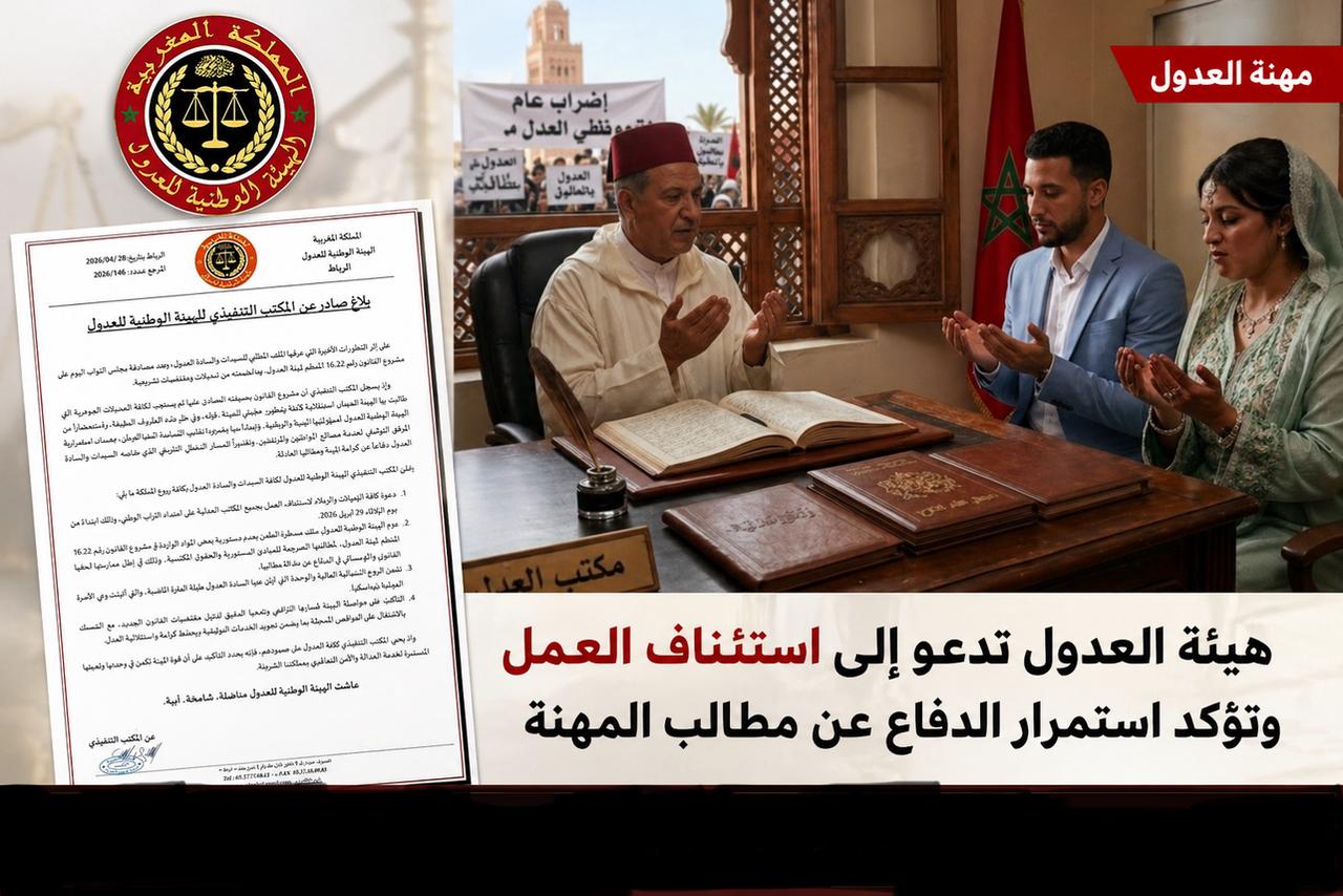 غير أن اللافت في هذا البلاغ، هو إعلان المكتب التنفيذي عن استئناف العمل بجميع مكاتب العدول عبر التراب الوطني ابتداءً من يوم الثلاثاء 28 أبريل 2026، بعد فترة من التوقف الاحتجاجي، في خطوة تعكس حرص الهيئة على التوازن بين الدفاع عن المطالب المهنية وضمان استمرارية المرفق التوثيقي وخدمة مصالح المواطنين.